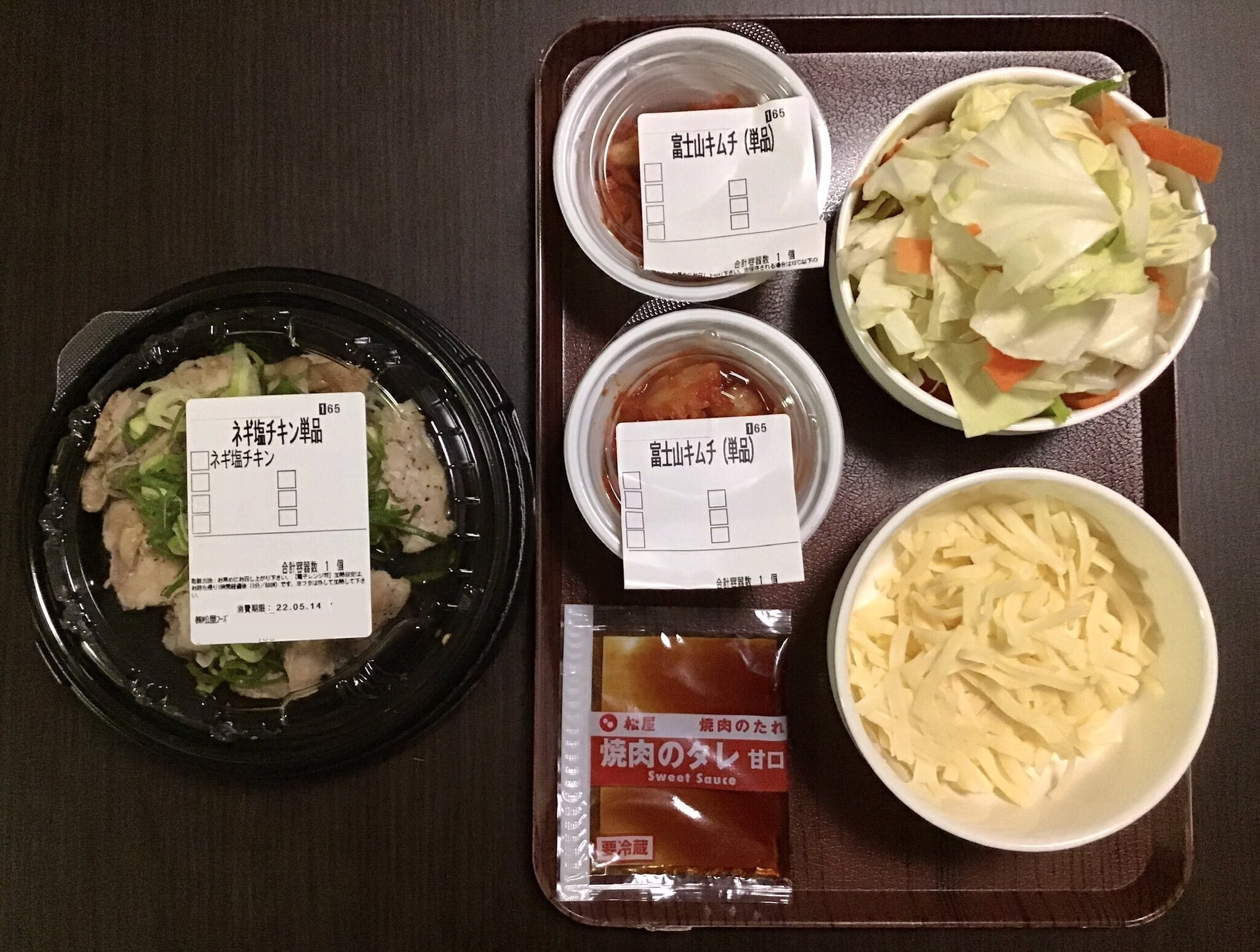 すごく美味しそう、、、ネギ塩ダレ、焼肉のタレとキムチ。