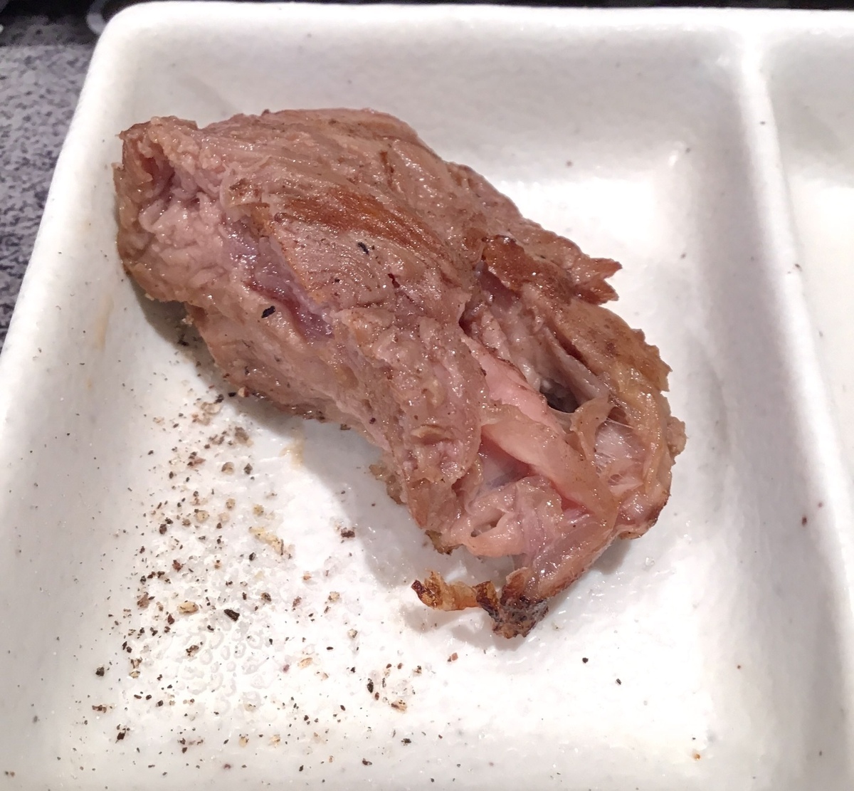 脂身との境目は少し硬いけれど、脂身はクセがなく甘さがしっかり。肉の部分は、旨味があって、少し噛むだけで、ジワリと溶けていく😋