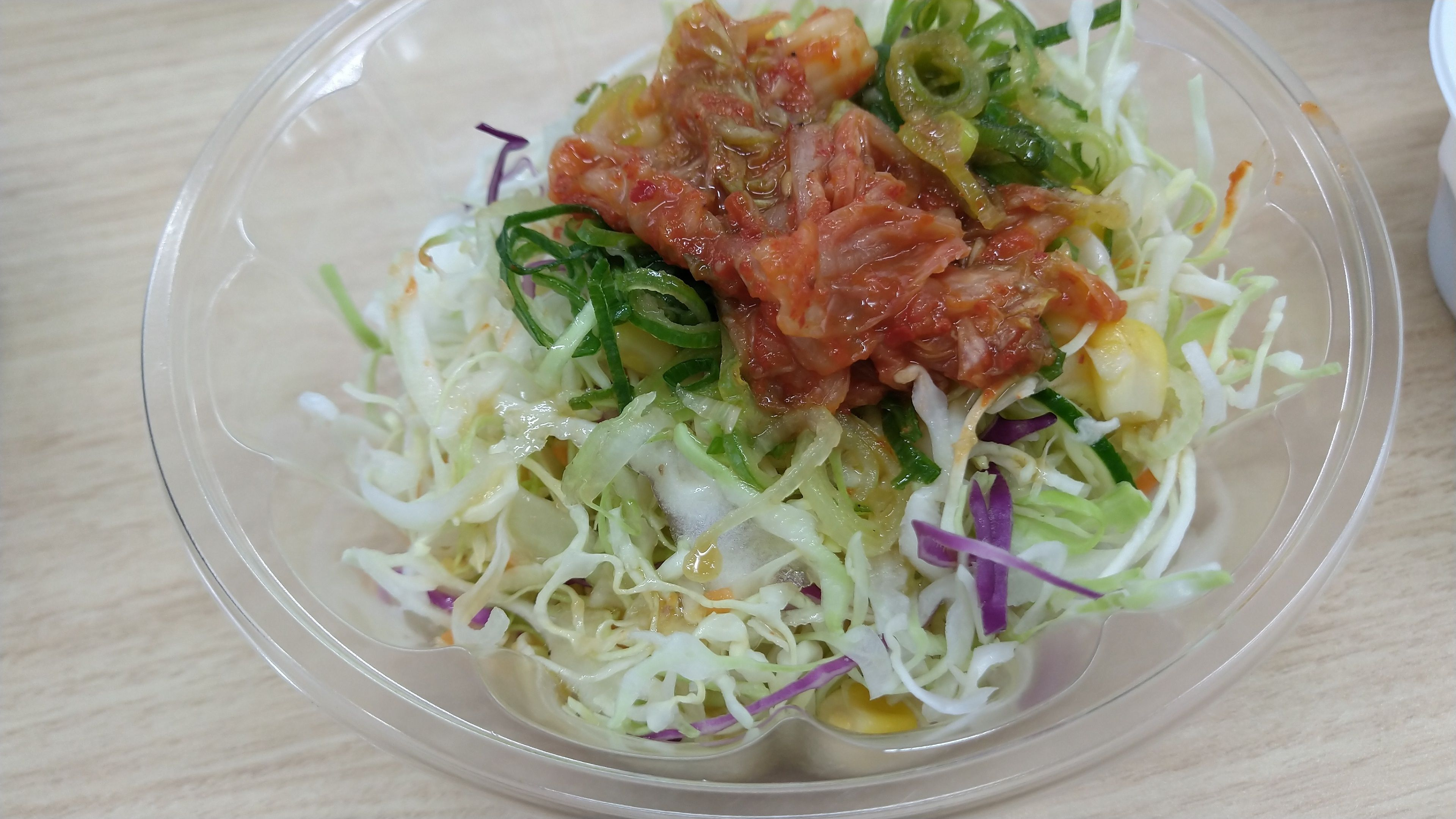 以前から、生野菜とネギ塩だれの相性が良いと思っていましたが、ここにキムチを足すことで、至高のネギ塩キムチだれ生野菜ができました。