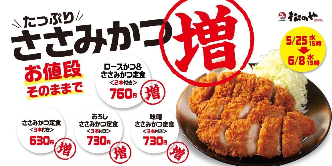 トップ > 食レポ投稿 > 松のや > 松のやでささみかつ増キャンペーン かす 2022/05/27 18:27 松のやでささみかつ増キャンペーン 松のや、やってくれましたね。 ささみ関連商品で1本増量! さっそく復旧した松弁アプリで注文。 ロースかつ&ささみかつ定食をオーダーしたら、ささみかつがもう1本付いてきた! おうちのお皿に盛り付けて見る。 1本だとちょっと寂しい感じ。 2本になって迫力が出てきました。 さらにロースかつも1枚付いてる。 どんだけ太っ腹なの? ロースかつも柔らかくておいしい。和からしが良い。 かつがたっぷりあるので、カツ丼にしました。 ロースかつと、ささみかつのカツ丼。 おいしい。 ホントに美味しい。ありがとう。 いいね 共有する 共有する X facebook LINE リンクをコピー コメントする 0 件の返信 (新着順)