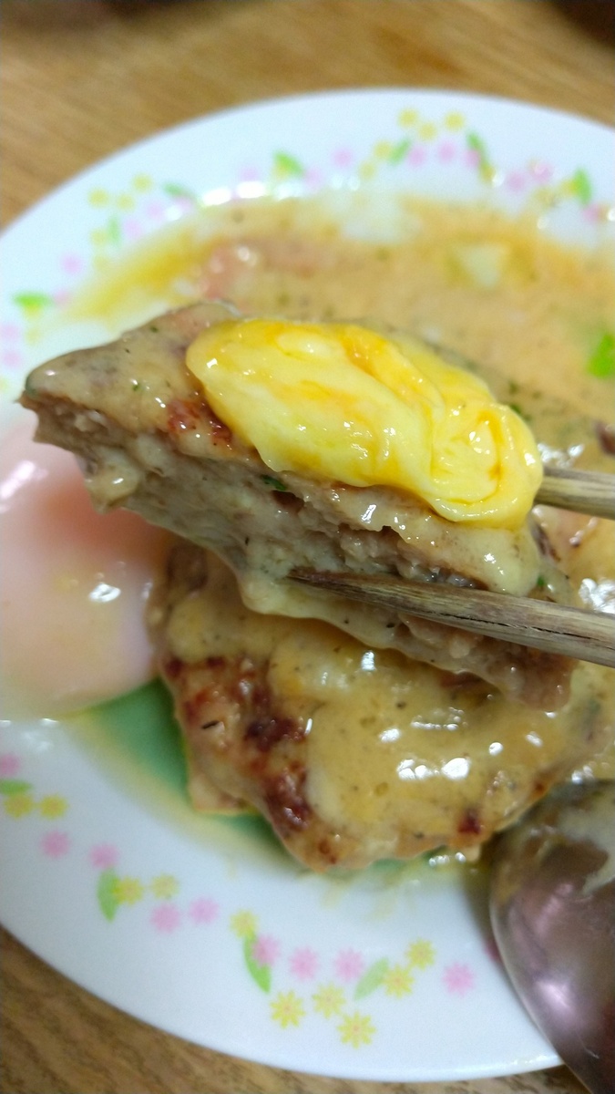かねてより、カルボバーグに追いチーズやってみたかったのですが、幸いにもマイカリー食堂併設の松屋だったので、トッピングとろーりチーズを追加注文しました。