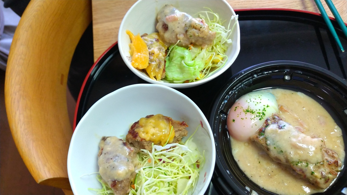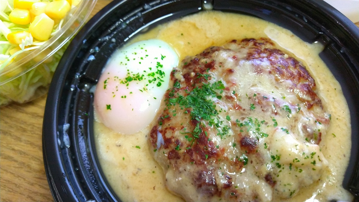 ■*カルボナーラハンバーグライスセット(ライスを生野菜に変更)/フレンチドレッシング