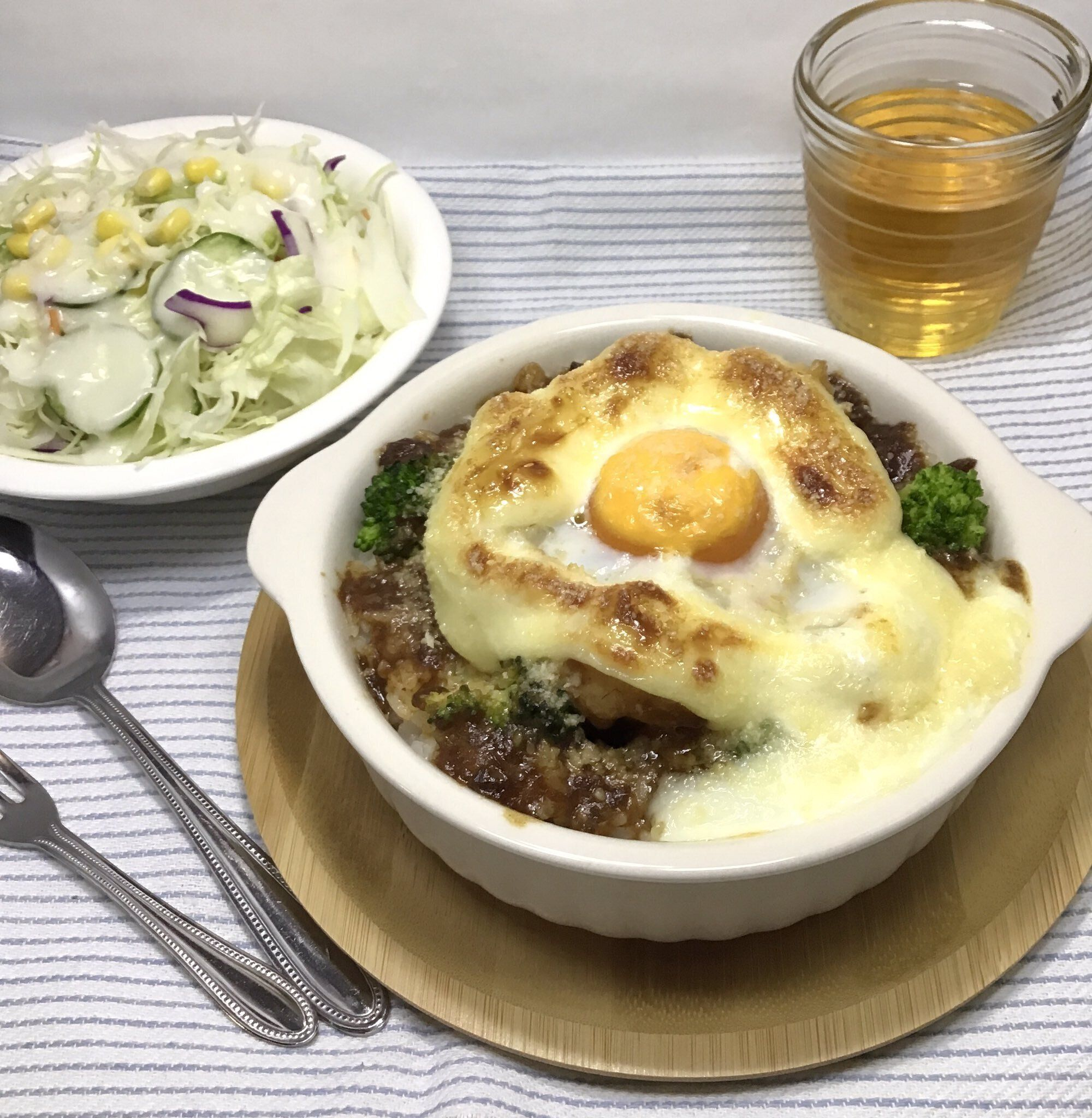 ブラウンソースエッグハンバーグでもよかったのですが、トロリとした黄身と一緒に食べてみたかったので、自宅にあった卵で。