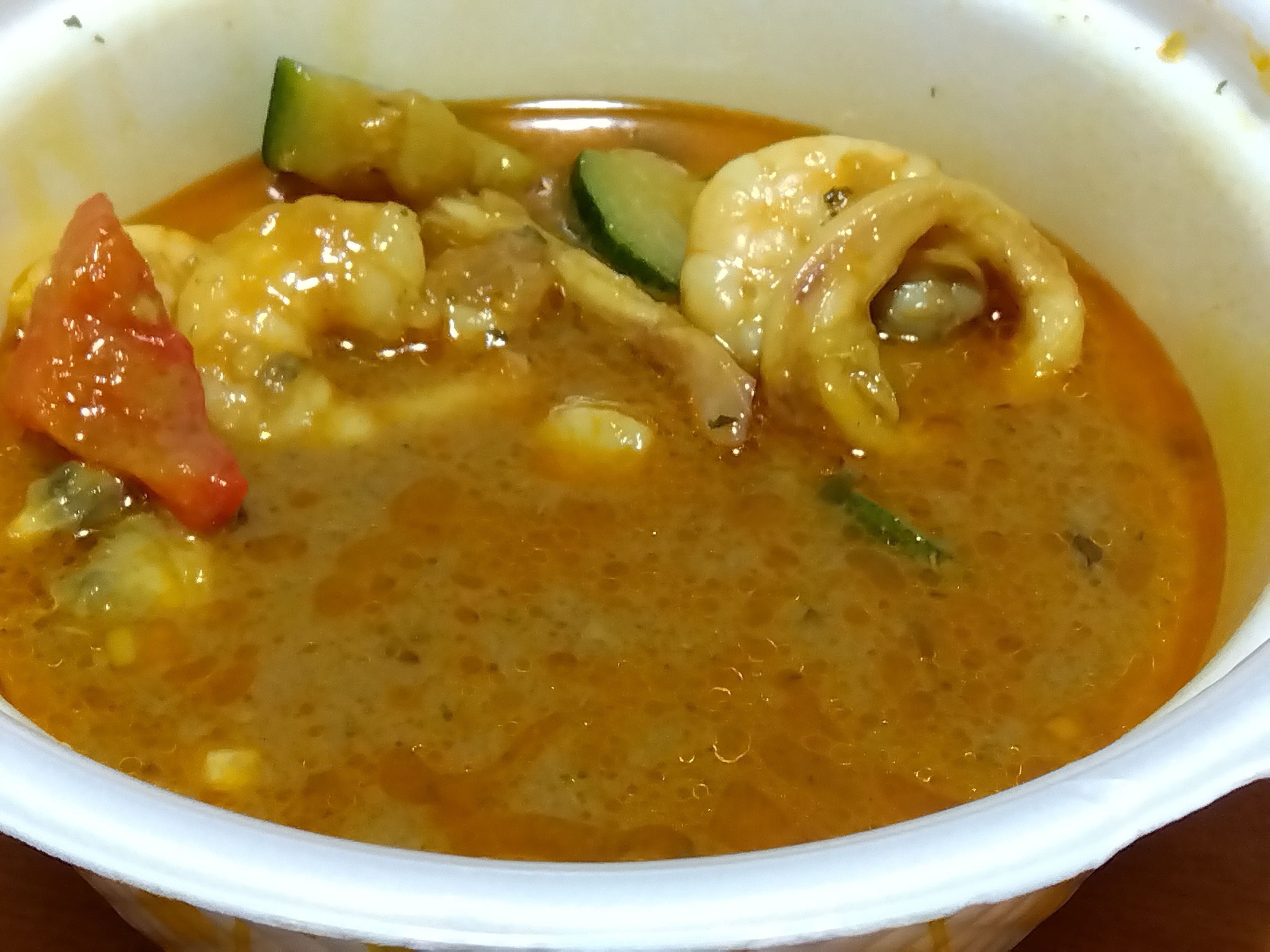明日食べに行けるかわからないので こんな深夜「海鮮ごろごろシーフードカレー」