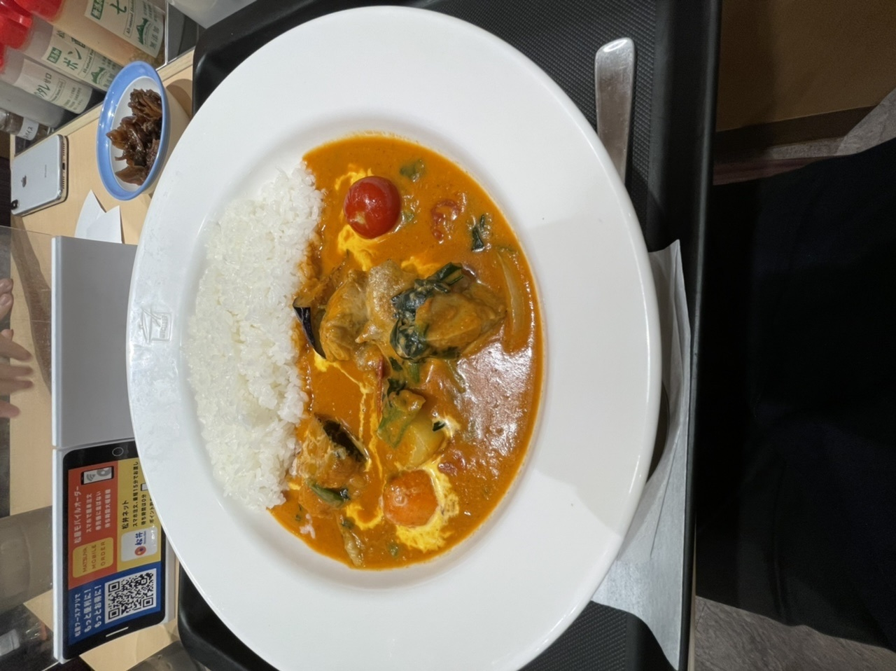 辛いものが苦手な私が大変美味しくいただけるメニューが彩り野菜よバターチキンカレー。