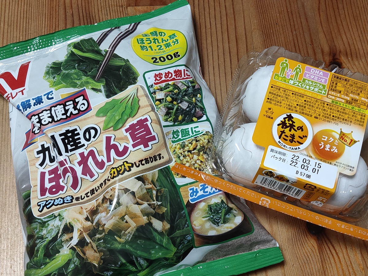 ほうれん草は少しでいいので、冷凍のを買ってきました。