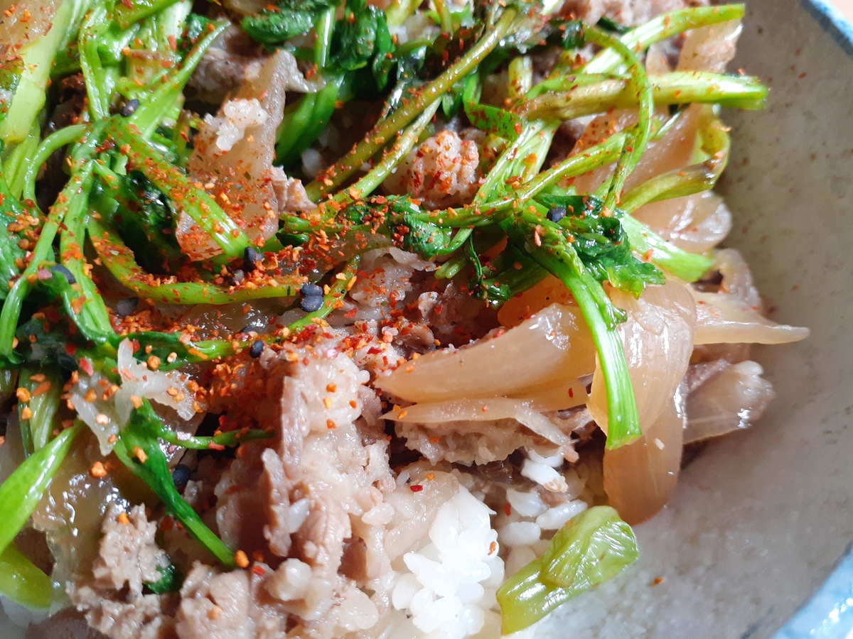 トップ > 食レポ投稿 > イベント(第2回アレンジ) > せり牛めし 夜の通勤快速 2022/04/04 16:23 せり牛めし 自宅でアレンジ!せり牛めし 材料:松屋の冷凍牛めしの具(写真は2パック)、松屋の米、名取のせり 根っこごと食べる名取のせり。 まずその根の部分を牛めしの具のたれでさっと煮て、続いて肉を投入。 茎と葉は最後に入れて軽く温めるくらいに。 ご飯にパイルダーオン!して完成!! せりの香りと味がお肉とマッチしてさっぱりした味わいに♪ 松屋の七味を振ると一層風味も増して美味しいです😋👍 いいね 共有する 共有する X facebook LINE リンクをコピー コメントする 1 件の返信 (新着順) ミュートしたユーザーの投稿です。 投稿を表示 ごまちん 2022/04/05 18:26 う~~~んセリの食感 ほろ苦さ絶対合うに決まってる。食べたい 宅配してくれ いいね 返信する