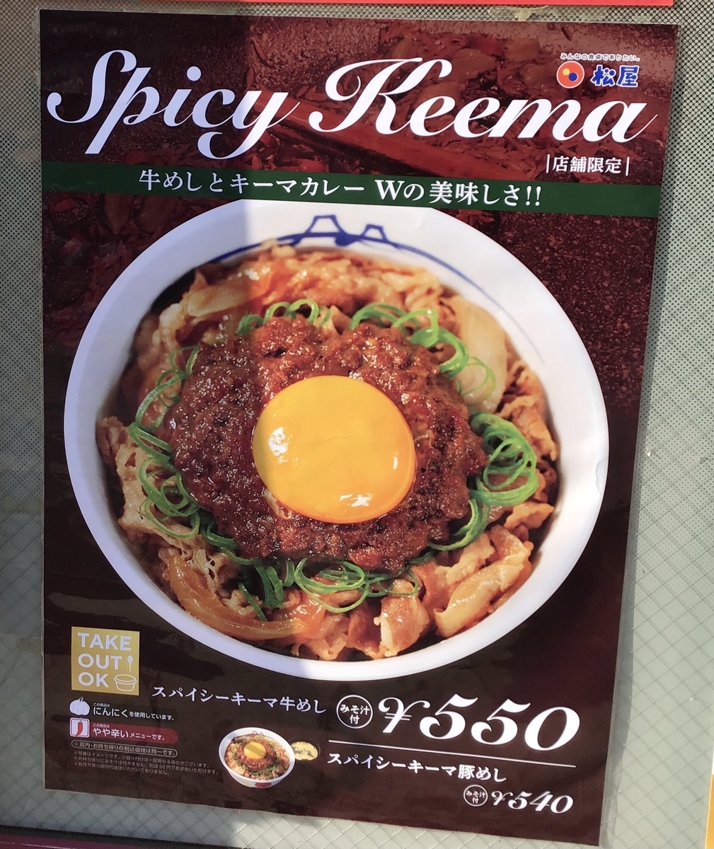 ゴロチキを食べようと、お店の前に来たら、スパイシーキーマという文字と、魅力的な画像が。