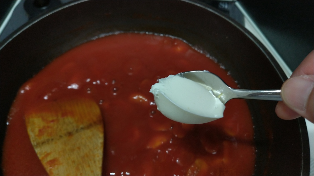 そこにケチャップ、ウスターソース、サワークリームを適量投入。
