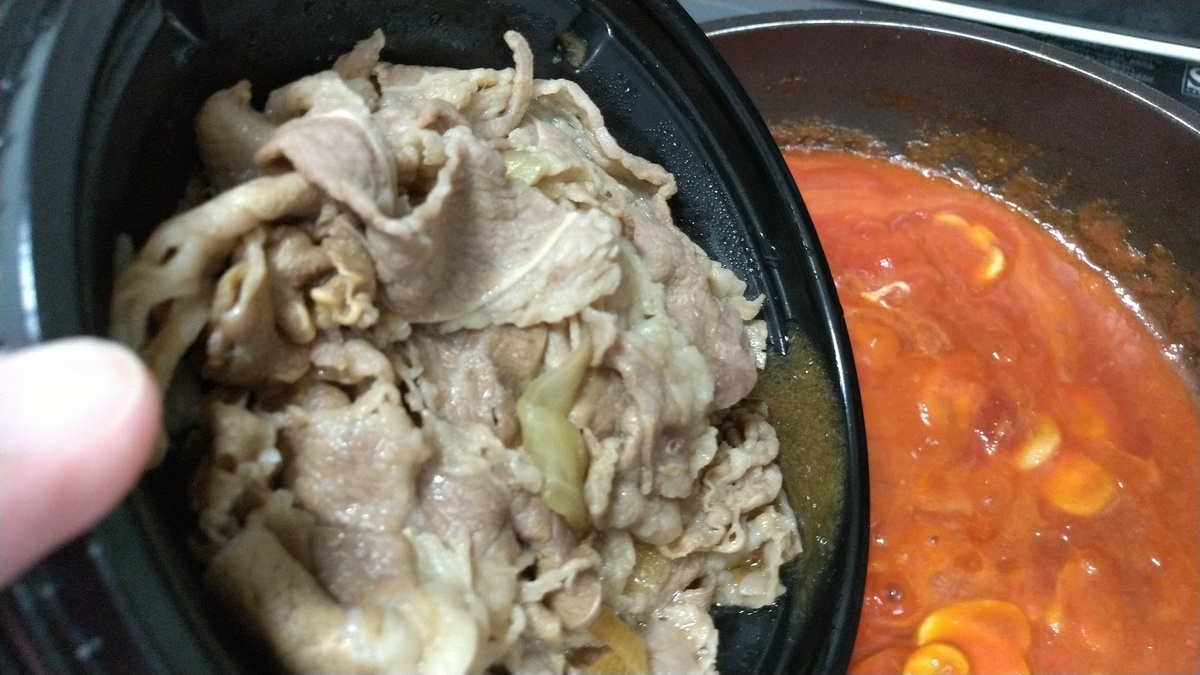 牛肉とかタマネギとか、いい具合にできあがってるから、超簡単にできました。
