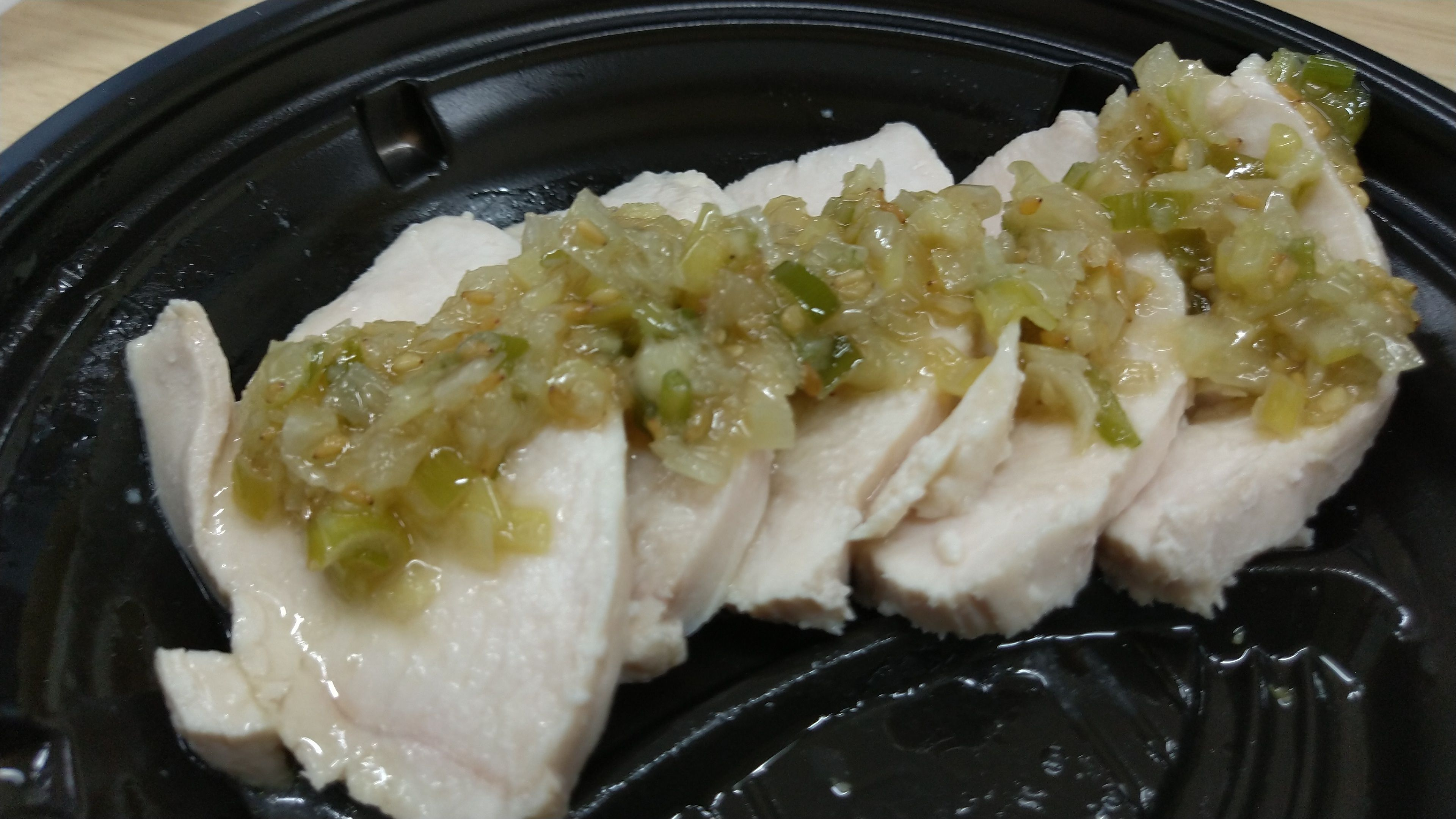 そして、今日はこのために自宅でゆでておいた鶏むね肉を持参。