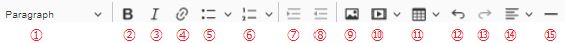 ⑭Text alignment 文字の水平方向配置(左寄せ、センター、右寄せ、標準)
