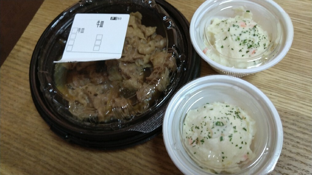 牛皿並とポテト2つテイクアウトしてコロッケにします。