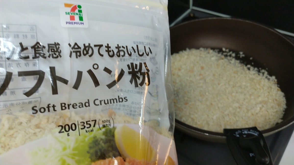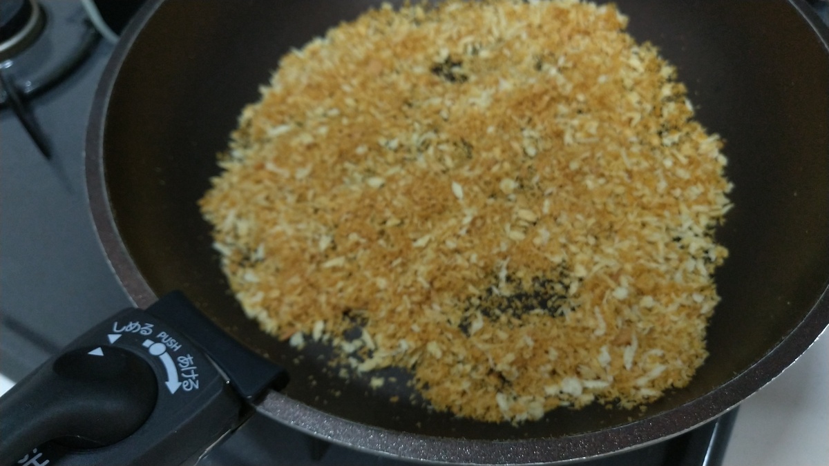フライパンに油を引かずにパン粉を投入。