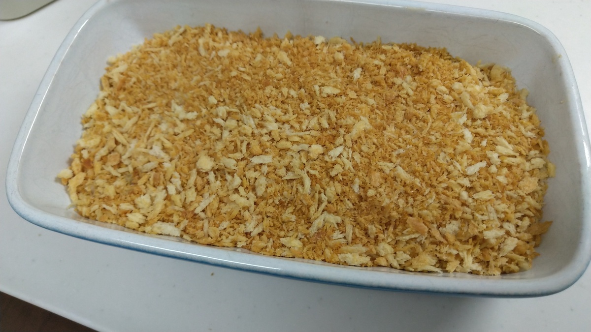 残りの炒りパン粉を表面に均等にかけたら出来上がり。