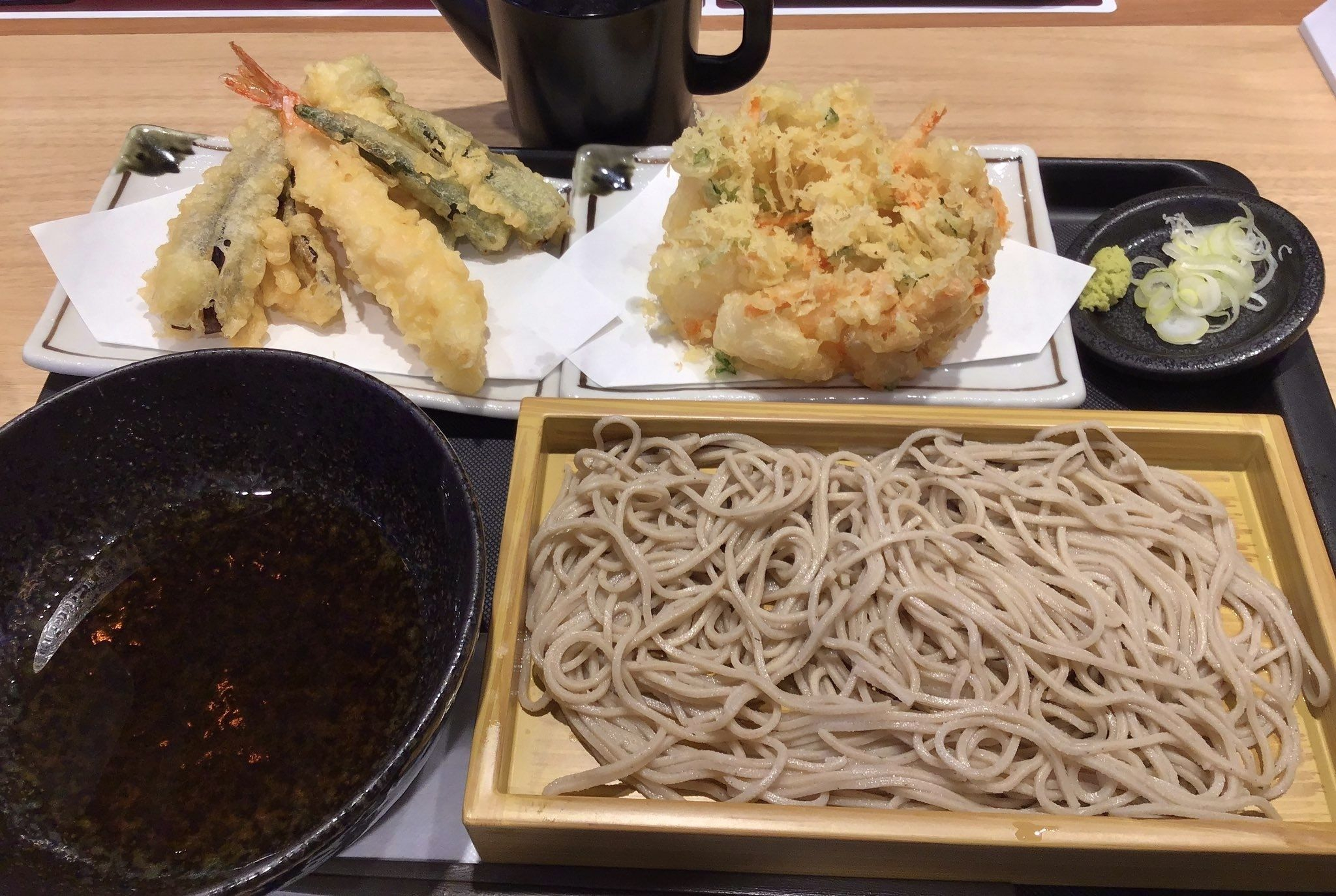 天ぷらせいろそば1枚と野菜かき揚げを選択。大和芋とろろも食べてみたかったのだが、券売機に表示されず、残念。