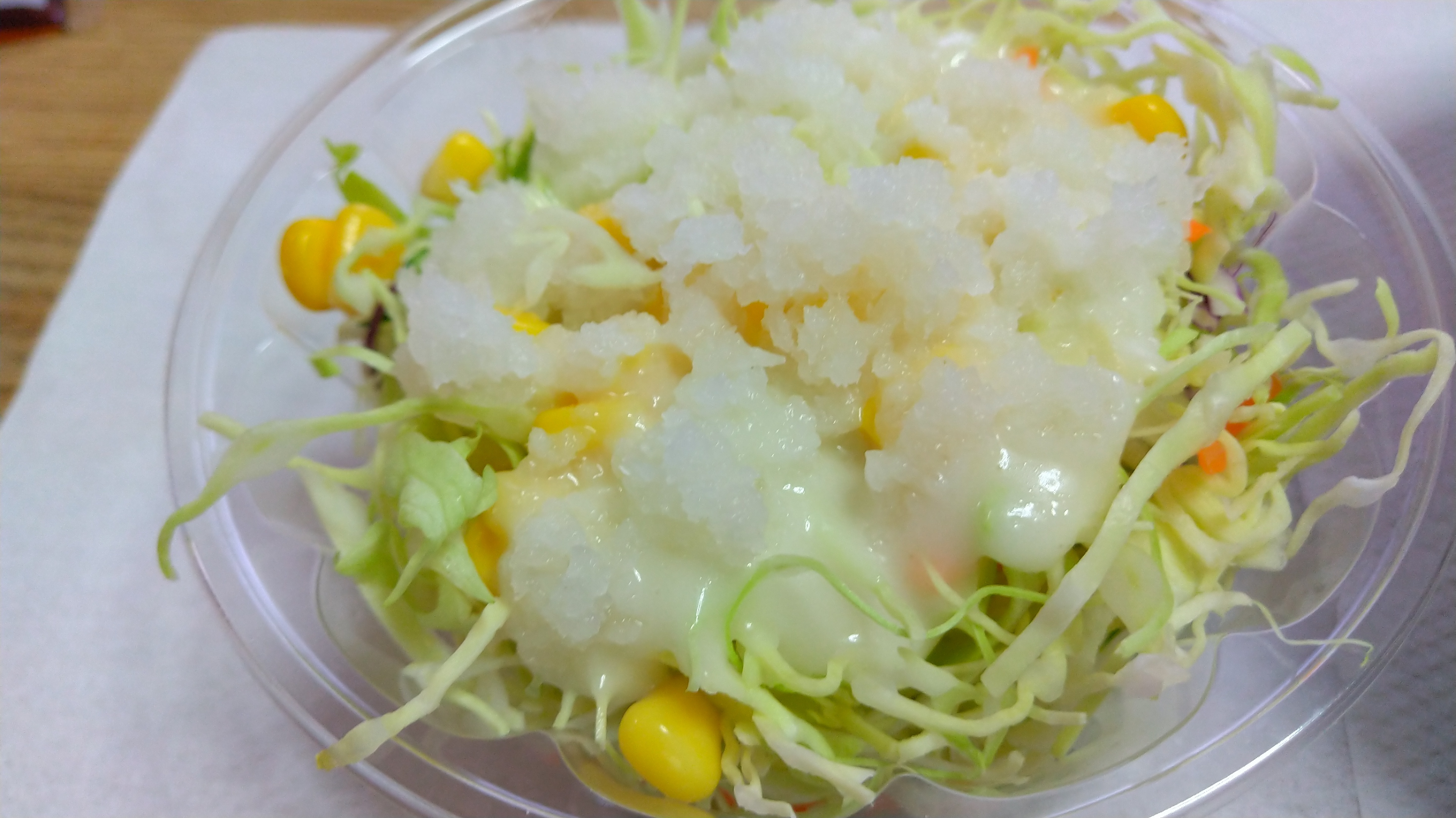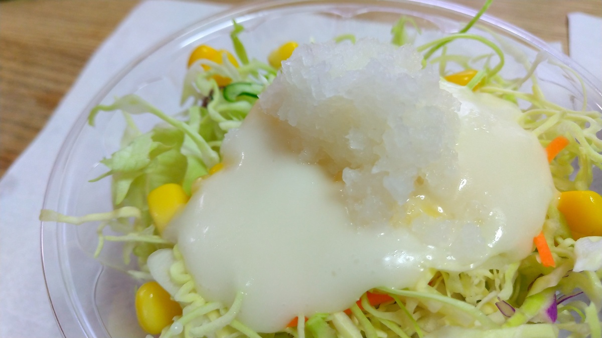おろしポン酢牛めしや、豚めしと一緒に生野菜を頼んで、大根おろしを半分フレンチドレッシングと混ぜて食べると美味しい。