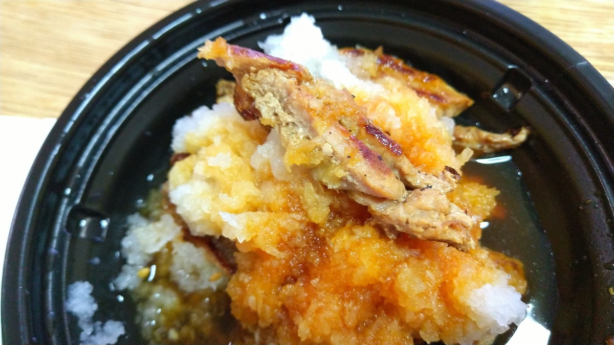 やりすぎるとお肉に合わせる分がなくなり寂しい感じになりますが、テイクアウトなら、自宅で大根おろしを追加することもできるので最高です。
